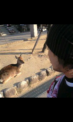 なんて写真撮っていたら、鹿の群れを引き連れた おじさんが来ました。なんだか凄いなついていて、おじさん→鹿5頭が「ドラクエ」みたいに一列になって歩く様が可愛かった。