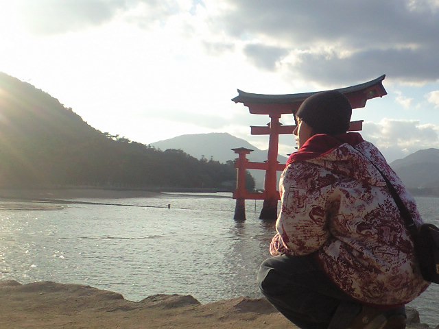10分程度で宮島に到着。制限時間は1時間30分。 まずは目的である厳島神社の大鳥居前へ。