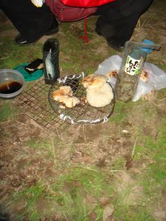 直火で餅を焼くのですが、普通は長い竹に餅をひとつ挿して